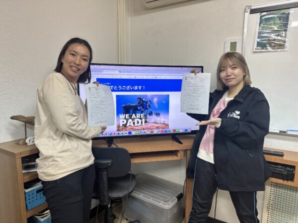 | お祝いコメント | はるかちゃん、ひかるちゃん、インストラクター開発コースの全てのカリキュラムと達成条件を満たし、無事に終了しました。 とても大変だけど、勉強になる8日間だったと思います。 インストラクターになる人は全てこの登竜門を潜り抜け、逞しいPADIインストラクターになっていきます。 今回習ったことを、しっかり整理し直して、更に自分のものにしていってくださいね。 IE後の吉報を延岡の地で楽しみに待ってます! ファイト〜イッパツ!!p(^_^)q |