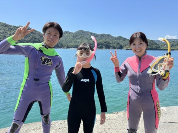 | お祝いコメント | 今日はシュノーリングに参加頂きありがとうございました! 延岡にご実家がある方々で、よく夏は帰省されるそうですが、初の延岡の海を体験してもらいました!カラフルな魚に沖縄にはないサンゴ礁も見れる延岡の海を楽しんでもらいました! また来年帰省された時も遊びに来てくださるのをお待ちしております! |