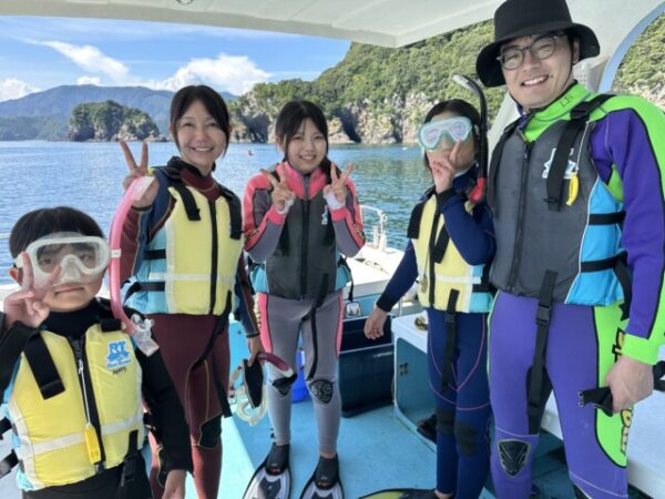 | お祝いコメント | 今日はボートシュノーケリングに参加いただきありがとうございました! この日3回目のシュノーケリングはボートでやって来ました! お姉ちゃん達はお互いの顔を見て大爆笑!末っ子ちゃんはお魚に興味津々!お父さん、お母さんも楽しんでいただけたようです! はしゃぎにはしゃぎまくって帰りのボートはみんなお疲れ模様でしたが、最高の夏の思い出ができたのではないでしょうか! ぜひまた遊びに来てください! |
