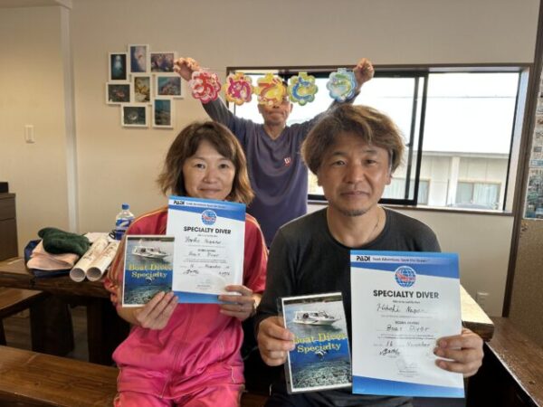 | お祝いコメント | 長野さんボートSP認定おめでとうございます! 初のボートダイブはいかがでしたか?マリンにはボートポイントが40ポイントもあるのでたくさんボートに乗って色んなポイントに潜りに行きましょう! |
