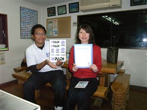 籾木さんOWダイバー認定おめでとうございます!!スキルもすいすい進んで最終日も3本潜ったちゃいましたね(^^)v早くから生物にも興味をお持ちなので魚やエビ・カニ、ウミウシ、カエルアンコウなどに詳しくなって自分で見つけれるようになってくださいね!!