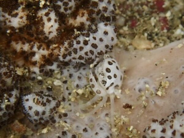 | 探し方のコツ | ソフトコーラル類のユビノウトサカやウミアザミの中に隠れる小さなカニです。 |