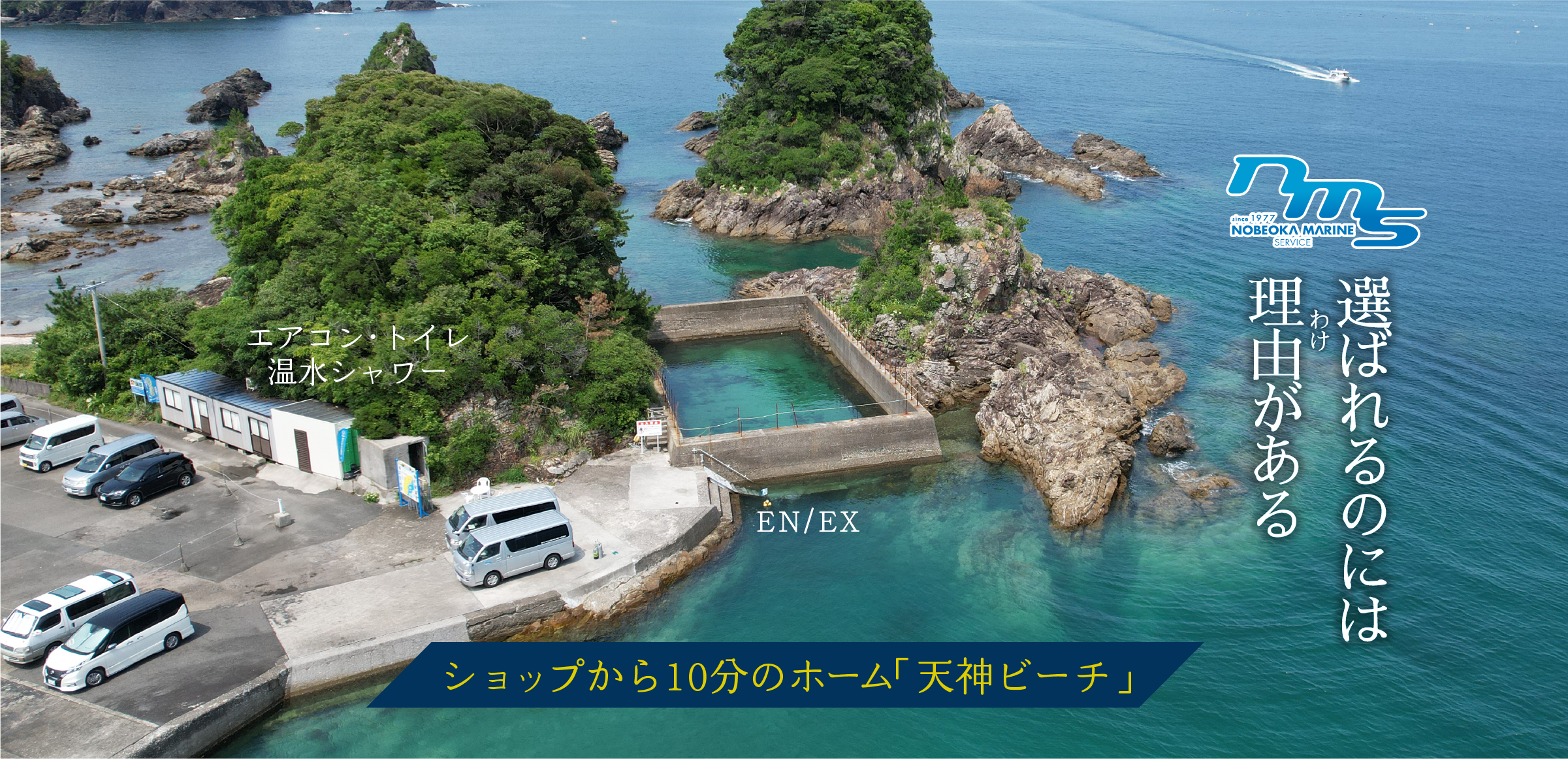 ≪注意≫※ 天神ビーチ横は高速艇、フェリーの発着場及び航路となっており、トラブル及び事故防止のために、セルフダイビングは行っておりません。地元のダイビングショップ、ガイドと共に遊ぶルールとなっています。延岡市・浦城町・延岡市漁業協同組合・日豊汽船・延岡マリンサービス