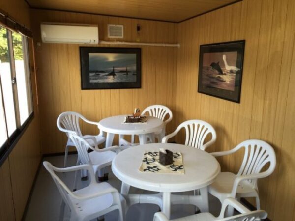 ▲エアコン・冷蔵庫・電子レンジを完備し、各部屋一度に約12名入っても休憩ができます。