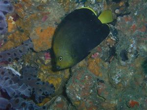 ブルーウォーターのリクエストで福岡のコスミックご一行様が14名でいらしてくれましたが、南海上にいる台風14号&15号の影響なのか、ずっとウネリが取りきれずブルーウォーターは断念し、島毛ダイブに切り替えました。もちろんウネリはありましたが、フラワーガーデンのNO.1とNO.2を潜ることが出来ました。相変わらず絶好調の島毛周辺は、魚種がめちゃ豊富で、イサキなどの魚群も当たってるので、今回も写真のアカネキンチャクダイを始め、沖縄などでは見られない延岡ならでは生物と、逆にカラフルな熱帯魚などの両方を堪能し、ゲストの皆様も喜んでいました。透明度は2本目沖からの良い潮が入り始めてきて、水底まではクリアにならなかったけども、水深10mくらいまでは15mオーバーで青くなってきましたよー!明日以降が楽しみです。