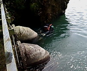今朝からまたまた潜水作業です(>_<。) 先日調査をした河川からの揚水場のポンプの下が現場でスタッフ4名できています。今週は天気も悪いし、気温も下がってるから、さらに水温下がってて7度です。しかも透明度は予想通り0ですが、この現場の大変さは濁りではなく、タンク&器材を背負ってなんと階段を50m以上昇降しないと行けないんです(゜O゜;)これが毎回ネックです。ここに来る度にサイパンのグロットを思い出しますわ(-。-;)とは言ってもグロットなら透明度40mくらいあるから楽しみがあるけどね…。しかしどの仕事も大変ですが、やはりお金を稼ぐのって本当に大変ですな〜f(^_^) こんな奴もいるので、皆さん残り半日お仕事頑張って下さいね。