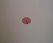 さて問題です!これはなんでしょう?そう!「的」です。でも何の的でしょう?実はこれ男子便所の小便器の真ん中に付いていた的なんです。笑うでしょう!何故かって?そうです。男性が用をたす時に狙わせる為です。そして便器からはみ出させないようにする為なんでしょうね。以前TV番組でアメリカでハエのシールを小便器につけることにより、それを狙う男子の心理を使って清掃に掛かる費用を下げたという話がありましたら、きっとそれと同じ考えなんでしょうね。でもどうせなら俺はハエのほうが良いかと思うけどね・・・。(笑)