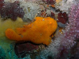 今日も昨日に引き続き、大分のタムタムチームと福岡のトリトンチームをお連れし、島野浦で2ボートです。今日は天気も悪い上に、気温がグンと下がっているから、ウェット組は寒かったでしょうね。でもダブルアーチのオレンジ色のイロカエル君は健在でした!色もきれいだし、可愛いサイズだし、かなり人気でしたわ!沖の小島にも新しいイロカエルアンコウ(薄紫?薄ピンク?)がいましたよ!天神より、沖のほうがカエルアンコウ天国ですわ・・・。