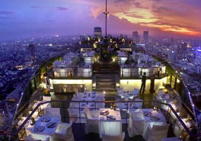 今度の年末年始のプーケットツアーの帰りに、バンコクでのトランジットがあります。時間もあるので、グルメはもちろん、マッサージやお土産も考えたプランを入れ込んでいますが、最後の締めに360度パノラマで夜景が見えるホテルバーで、オシャレに打ち上げをしたいと思っています。こんな所、正直カップルで行ったら最高でしょうね!皆さん、すいません、私と一緒で・・・(^^;