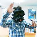 オーバーホール用に届いた消防署レスキュー部隊用のダイビング器材!ウチにもありますが、これがやたらにでかいフルフェイスマスク…(^-^; これは陸上と会話できる水中マイク付きです。ダースベーダのつもりで被っときましたぁ〜(^^ゞ