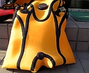 これはマリンメンバーのKちゃんのドライスーツです。Kちゃんのドライは股間が濡れて、おもらしみたいになるとのことで調べると、やはり股間のど真ん中にピンホールが見つかりました!(#^.^#) 場所が場所だけにかなり冷たかったでしょうね(笑) スタッフの真由美も同じ場所に穴があり「何故こんなところに…(?_?)」と大笑いしてましたが、皆さんも大事なところを冷やさぬように保管時やダイビングの休憩中などに気をつけましょうね(^_-)-☆