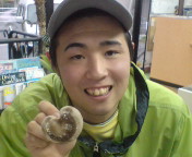 今日のボートは雨に邪魔されましたが、オーシャンビューさんの延岡ダイブ2日目もかなり充実したダイビングでしたよ〜!なんせ、島野浦島のダブルアーチでは水温が19度に上昇しており、そのお陰でいつものトンネル内の魚群だけでなく、キンメモドキとウスモモテンジクダイのそれぞれ大群がもう壁のようになってましたぁ〜。マジに凄かったです。そしてそんな楽しいダイビングを終えて、マリンでゲストの皆さんとワイワイやっておると、ナバくんが椎茸&たらの芽を持ってきてくれました!やったぁー、ラッキー!!そのときに「ハート形の椎茸もあるんだよ〜」とのコメント・・・。マジにハートになっていましたが、正直似合わないなぁ〜!(^^;)あはは!でもいつもありがと!今回もバター焼きして食べるね。