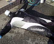 ついでに自分のドライスーツのメンテナンスです。こんな風に店先でドライをパンパンに膨らませ横たわらせていると郵便配達や運送屋さんがビックリしていました(^^; バルブをばらしたり、水没検査などもしましたが、首のシール部分がヤバイ!(>_<) やはり劣化で弱ってきていて水没間近!( ̄▽ ̄;)もちろん私が潜る分だけ水中に入る訳で、ゲストより過酷な環境で潜らされてるから当たり前ですが…。これでも購入して二年目で約700ダイブくらい潜っていますから寿命ですけど、応急処置をしてもう少し頑張ってもらいましょう!