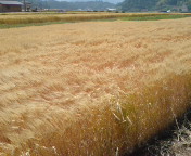 原尻の滝がある「おがた町」では、ビールを作る材料の大麦を作ってるんですよ!しかもここの大麦は、なんと!あのキリンビールに使われる提携の大麦なんだって!今まで知らなかっただけに、びっくりしました。これまた丁度タイミング良く、収穫前のたわわに実った大麦の畑には、キリンの関係者らしき団体が品質チェックをしてましたわ。