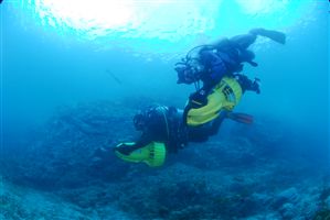 今日も透明度はバツグンですよ!今日は水中スクーターのSPインストラクターコースで伸さんと鼻先まで水中暴走族してきました。クリアで魚の多い天神だから、本当に気持ちいいっす!鼻先には20匹くらいのムレハタタテダイや50匹以上のアオヤガラの大群などもいましたよ。今年はスクーターにはかなり力を入れていくつもりですから、興味ある方はSPを・・・!すでにSP持っている方ならファンダイブでスクーターダイブしましょう!是非リクエストしてくださいね!