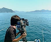 取材二日目の今日も、社長が船長で私ガイドしています。スジハナダイやサクラダイも狙いましたがバッチリ!かなり明るい150Wのムービーライトなので、本当にキレイに色が出てましたよ。でもオオスリバチサンゴポイントは濁ってます。まだ昨日の方がマシでした。でも水中リポート付きでしたので、見てて楽しかったですよ。また今日は陸上の撮影班2名も加わり、島浦島周辺の映像もボート上から撮影しましたよ。かなり本格的な放送になりそうですよ。3本目はNEWポイント「ダブルアーチ」に連れて行きました。これは島浦島の南東側にある大きなトンネルが2つあるポイントです。ソフトコーラルもたくさんついておりキレイで、トンネル内には凄い数の魚もいますよ。今後、皆さんも連れて行きますのでお楽しみに!