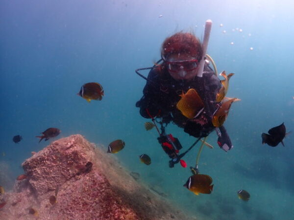 今日はイロカエルアンコウがペアでいてくれたり、チョウチョウウオたちの歓迎を受けてもらいました(⌒∇⌒)