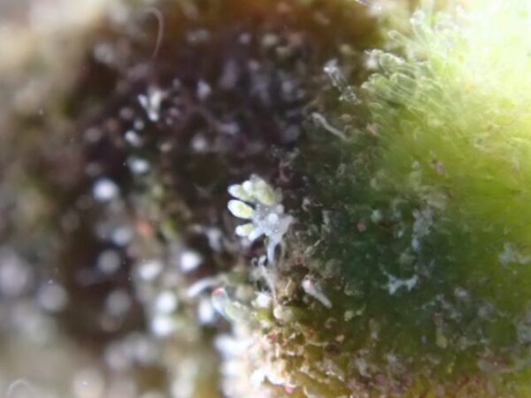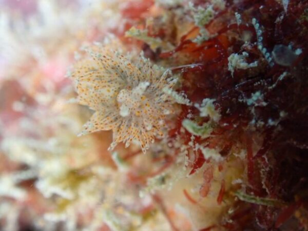 な~んか葉っぱ持って写真撮ってるな~と思ったら、その先に1㎜位のウミウシ(であろう白い点)を頑張って撮影してましたΣ(・ω・ノ)ノ!み、見えないぞ…と思ってましたが、ログの時に見せてもらったらちゃんとウミウシ!やっぱり好きだと目に入るんでしょうね~(⌒∇⌒)