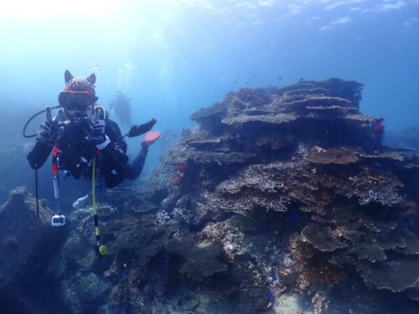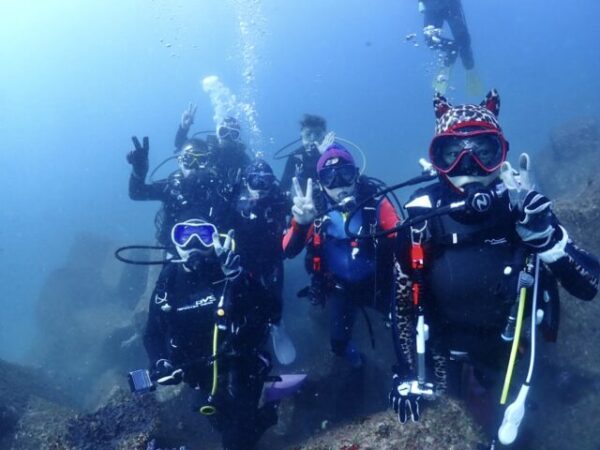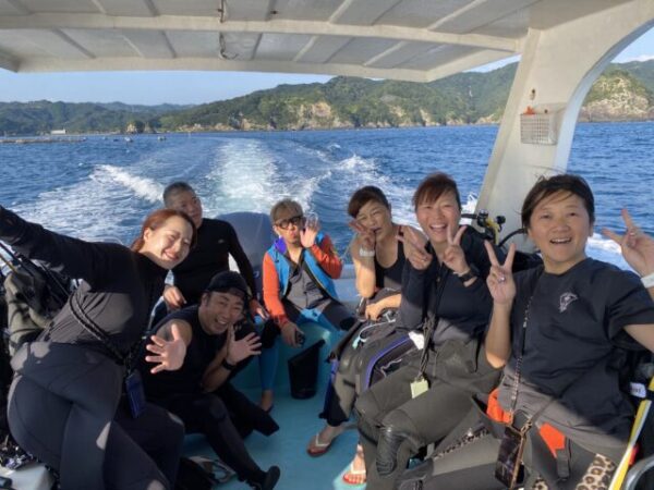 ▲今日も元気に3ダイブ♪ 天神ビーチに戻って、ベニカエルアンコウを見に行きました。