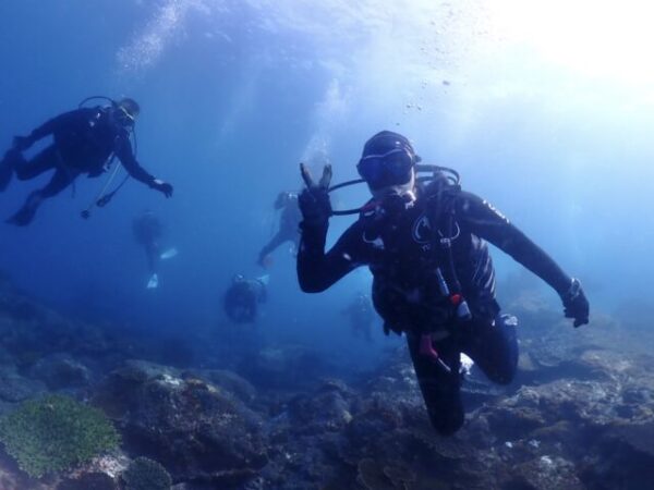 ▲今日も元気に3ダイブ♪ 天神ビーチに戻って、ベニカエルアンコウを見に行きました。
