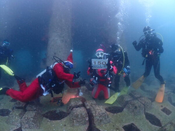 さらにこの日はクリスマスイブと、F君が150本の記念を迎えました!OWを取って1年で沢山潜ってくれました!