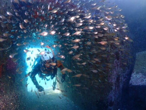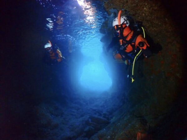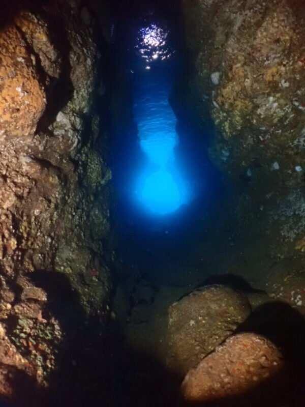 ▲日向市消防本部の潜水隊の維持研修ダイブ月間!本日も潜水隊のトレーニングを担当しました。本日もベタ凪&満潮なんで、1本目に水中洞窟を狙いました。透明度も良く「青の洞窟」になってました!\(^o^)/