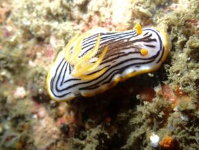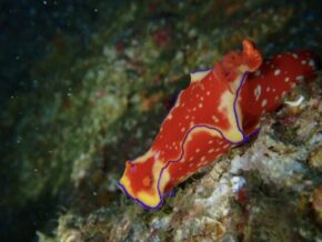 ▲また壁沿いは、ソフトコーラル群生や魚群だけでなく、色んなウミウシ類とオルトマンワラエビやチュウコシオリエビ、イソバナカクエエビ、アカスジカクレエビなどの甲殻類なども見れましたよ。