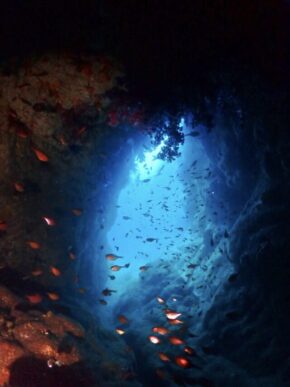 ▲そして、2つ目の南側の水中トンネルも通って、ダブルアーチを満喫し、浮上しました。