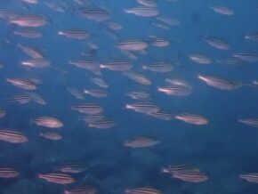 ゼブラガニやミドリリュウグウウミウシ、アカオビハナダイ群れなど色々見れました。