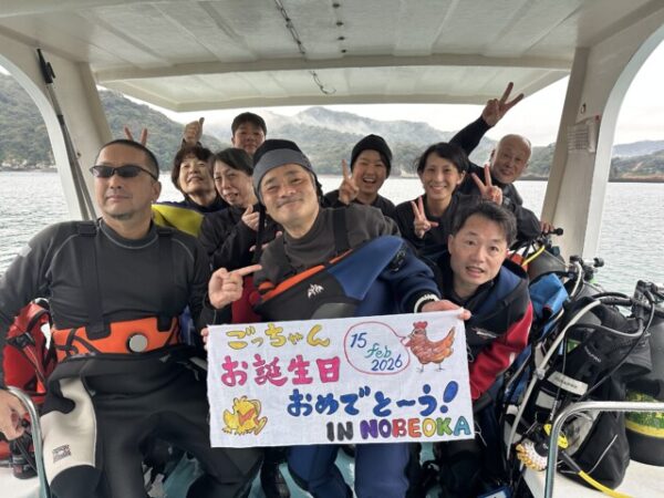 1本目は運良く、リクエストの「島んだ宮殿」に潜る事ができました。週末はほぼ潜れないのにラッキーです。そんな中、エリートのリピーターゲストさんが延岡でバースデーダイブを迎えました\(^o^)/