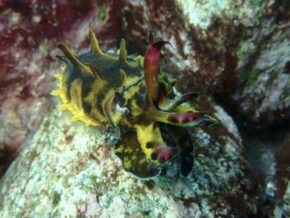 またNEWフェイスの赤色のイロカエルアンコウ若魚やアカネキンチャクダイ、イボヤギミノウミウシなども会えました。