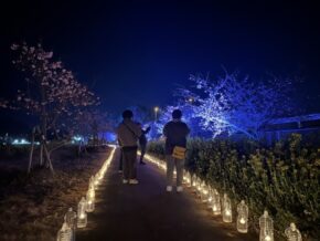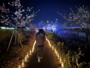 ▲丁度、延岡花物語このはなウォーク2026を開催中で、この夜のみ「夜桜花灯り」をやっていたので、夕食前に連れて行ってきました。