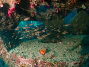 ▲オアシスNo.3は、漁礁の周辺やサンゴエリアには魚がわんさか群れていて、相変わらず賑やかでした!