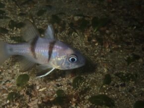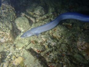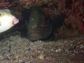 ▲そして、漁礁にいるムレハタタテダイの群れは相変わらず夜も同じ場所で集まって寝ていました。