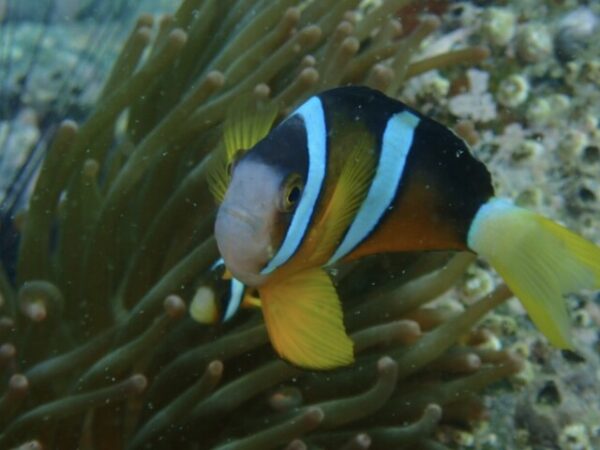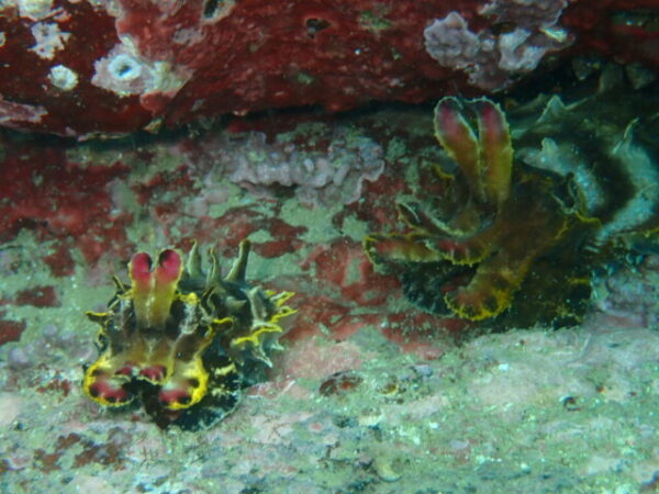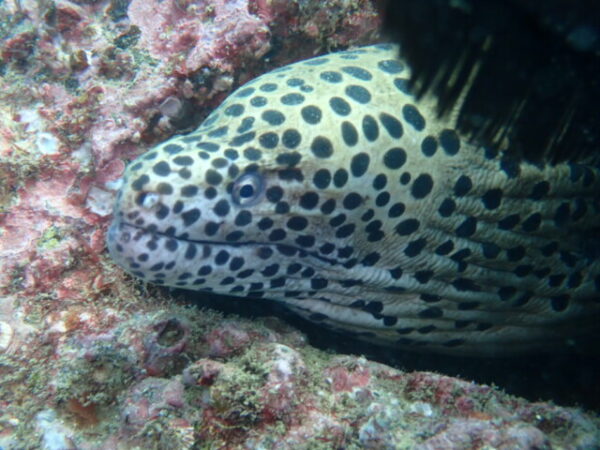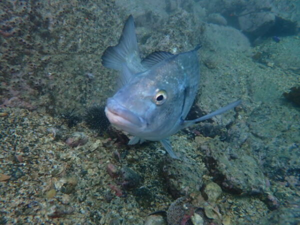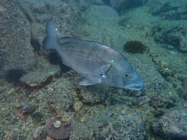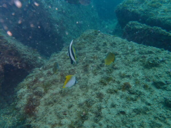 天神ビーチの魚礁手前のいつもの横割れに、NEWフェイスのペアがいました。