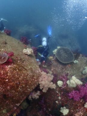 ▲ウミウシだけでなくサンゴも大好きというので、まずはシーメイズの延岡自慢でもあるソフトコーラル群も見て頂きました!