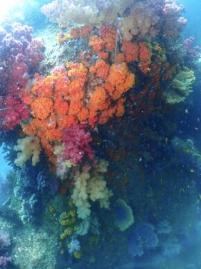 一面に広がる色とりどりのソフトコーラルを見て喜んでくれました。