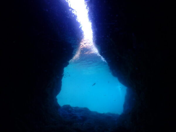 ウミウシを撮ってもらっている間にちょっと洞窟の中にも行ってみた。