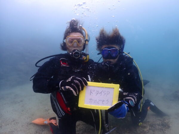 お二人ともお疲れさまでした!今度はドライスーツを着てボートダイブを楽しみましょう!!