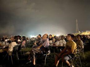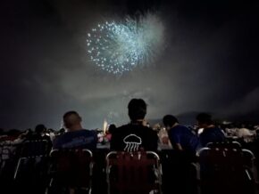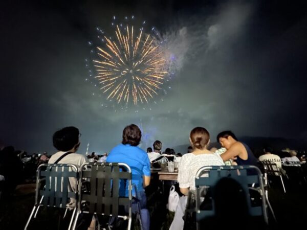 ▲今回も頑張っている実行委員への寄付も兼ねて、折角なので特別な有料席を予約して、花火の打ち上げが真正面&至近距離という最高な場所で楽しませてもらいました。