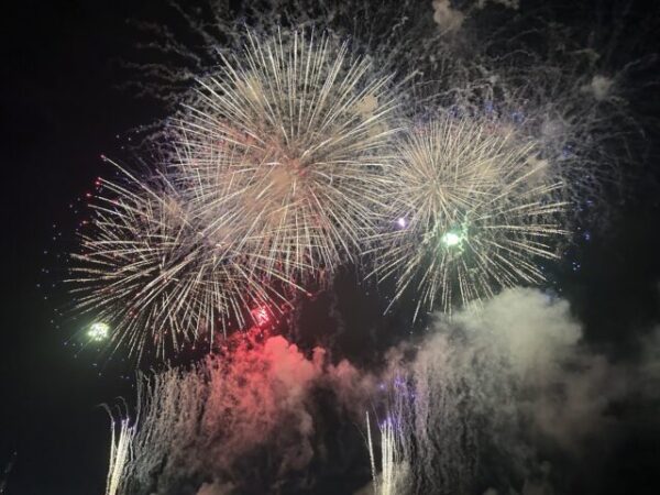 ▲花火が上がる前に少し雨がぱらつきましたが、花火がスタートしてからは降られず、思い切り楽しむことが出来ました。