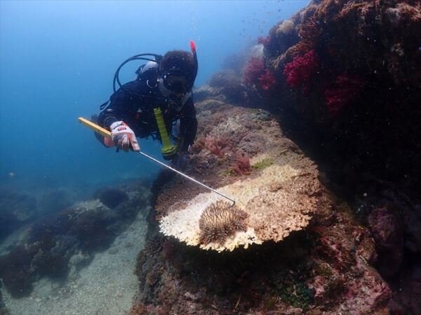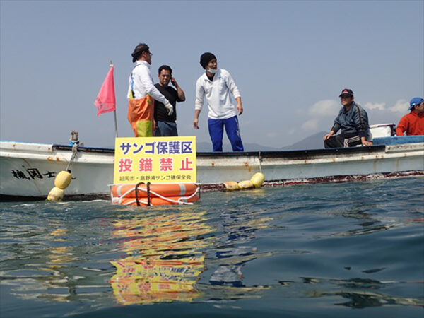 水産課や地域の漁業関係者と共に、森と同じ役目をしてくれる海中のサンゴ調査や藻場を再生させるプロジェクトのお手伝いをしています。