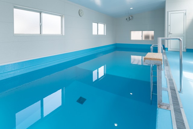 ●大きさ:長さ 9m × 幅 3m●深さ:浅場 1.2m(長さ5m)/深場 2.5m(長さ4m)●温水仕様