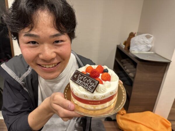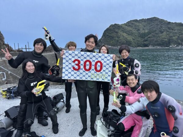| 本人コメント | 300ダイブを延岡で迎えられてよかったです! 延岡ナイトはやっぱり楽しいですね! ハナガサクラゲが綺麗でした。 300ダイブを一緒に潜ってくれた皆さん、祝っていただきありがとうございました! |