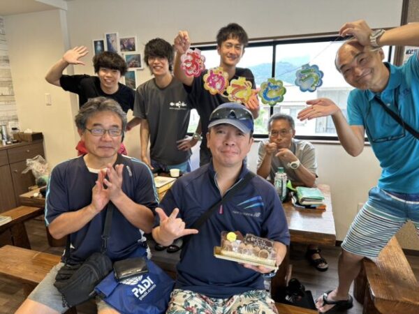 | お祝いコメント | 新宅さん、念願の延岡で祝333フィーバーダイブ記念おめでとう御座います! 流れ流れだっただけに、自分たちスタッフもホッとしております。 今後も熊本から頑張って通って頂き、たくさん潜ってストレス解消してくださいね。 |