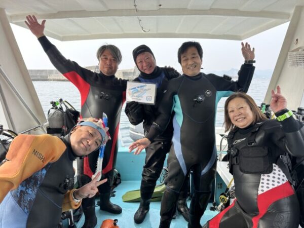 | お祝いコメント | 大塚さん、毎年延岡ツアーに参加してくれて、今年も無事に再会出来てとても嬉しいです。 そして、今年は延岡で祝700ダイブ記念を迎えることができて良かったです。 上羽くんの新しいショップの延岡ツアーでまたお越しくださいね。 楽しみに待ってます! |