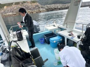 ◆毎年恒例の宮﨑大学のサンゴ研究チームと一緒に、島浦島でサンゴ調査に行ってきました。