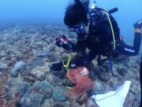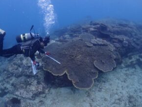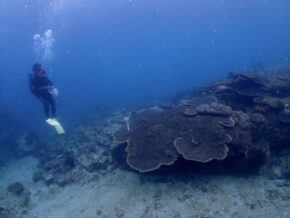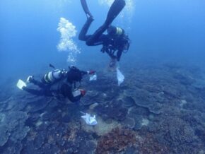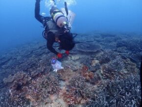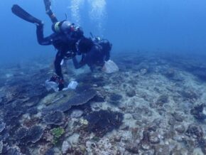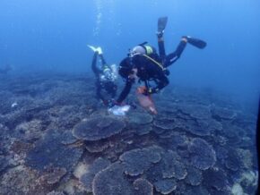 今回の調査はサンゴの種別と水質調査、そしてサンゴ周りの褐虫藻類発生しているのかを調査です。