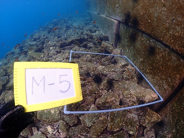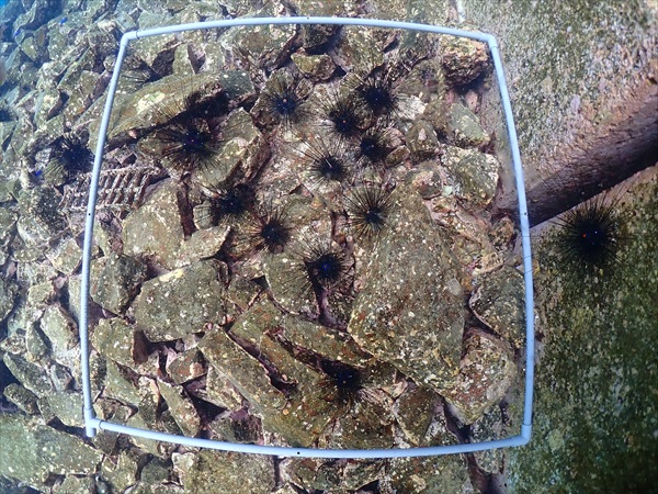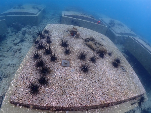 これは宮崎県が入れている藻場床ですが、各ブロックにもガンガゼが沢山くっついていました。