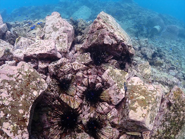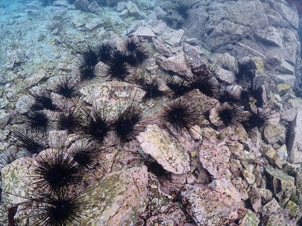 ▲今回も予算の関係でうちが手出しで潜ってもらった潜水士もいますが、未だにハンパないウニが周辺にいるので、日数とダイバーの人数をかけて徹底的に駆除しないと、効果が望めない気がしていますので報告書にもあげました。
